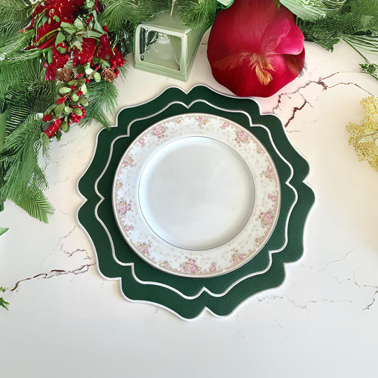 ZENVIA WHITE DARK GREEN FAUX LEATHER PLACEMAT