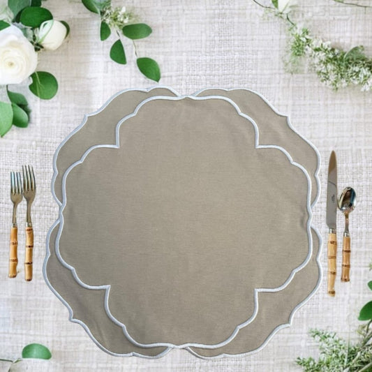 AQUELLE BABY BLUE WHITE TRIM FABRIC PLACEMAT