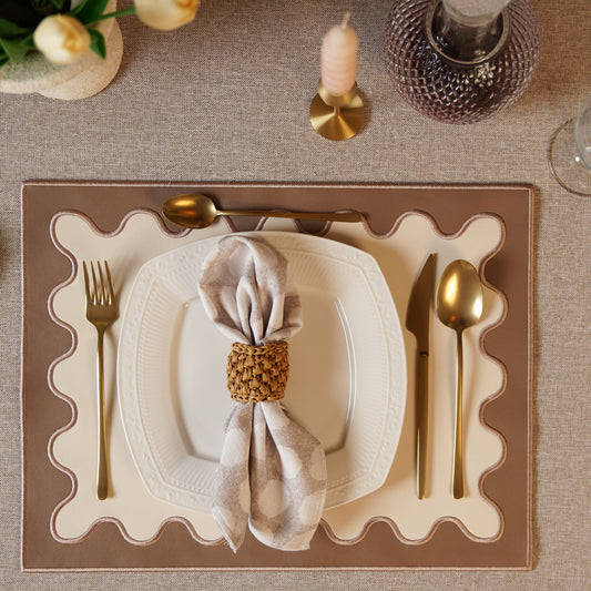 Discover The Placemat’s Chic Collection: Faux Leather, Linen, Fabric & Embroidered Elegance.