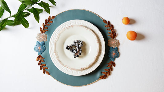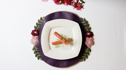 Discover The Placemat’s Chic Collection: Faux Leather, Linen, Fabric & Embroidered Elegance.