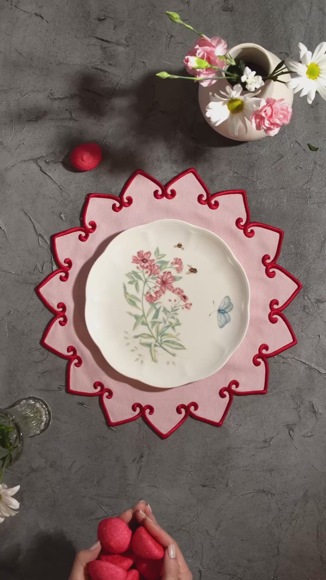 ASHBURY PINK RED TRIM FABRIC PLACEMAT