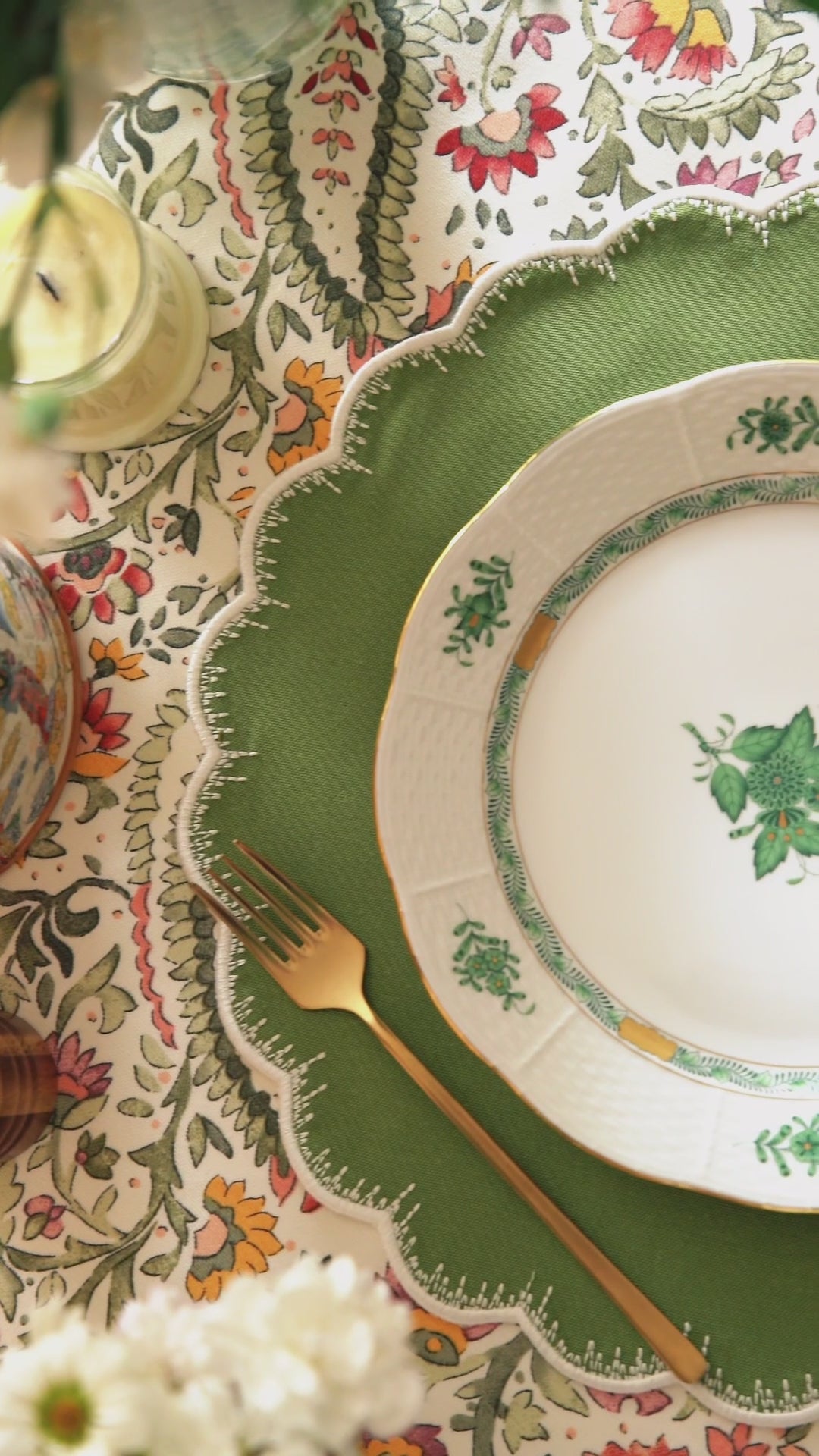 CLOVER GREEN WHITE TRIM FABRIC PLACEMAT